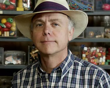 His sculptures are composed of recognizable objects of plastic, metal and wood. These objects are chosen for their color, shape, texture, durability and patina; then they are assembled using nails, bolts, and screws. The outdoor sculptures are constructed of stainless steel, brass, or aluminum found objects which are welded together.